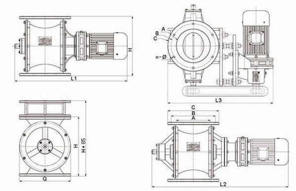 型號(hào) | A | B | C | H | Q | L1 (內(nèi)) | L2 (外) | L3 (鏈) | n-Ф | 工作溫度 ℃ | 轉(zhuǎn)速 轉(zhuǎn)/分 | 電機(jī)功率KW |